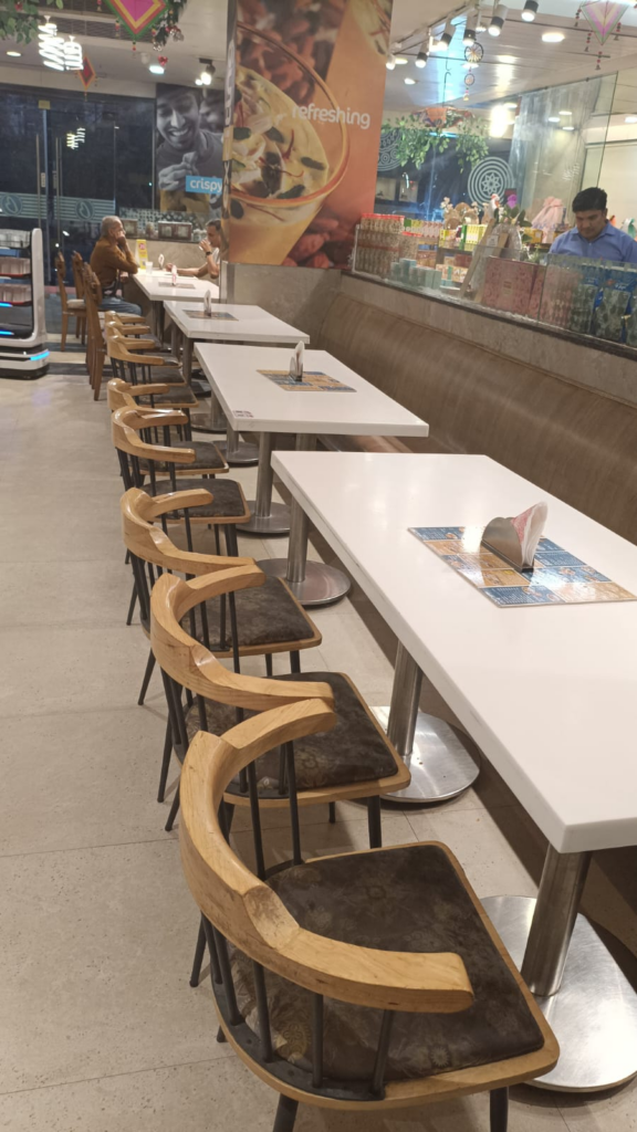 Restaurant का ambience family-friendly है। Clean और well-lit interiors, comfortable seating, AC hall, background में soothing music – सब मिलकर एक pleasant dining experience create करते हैं। बच्चों के लिए high chairs भी available हैं।